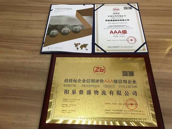 陽(yáng)泉某物流有限公司3A信用評(píng)價(jià)